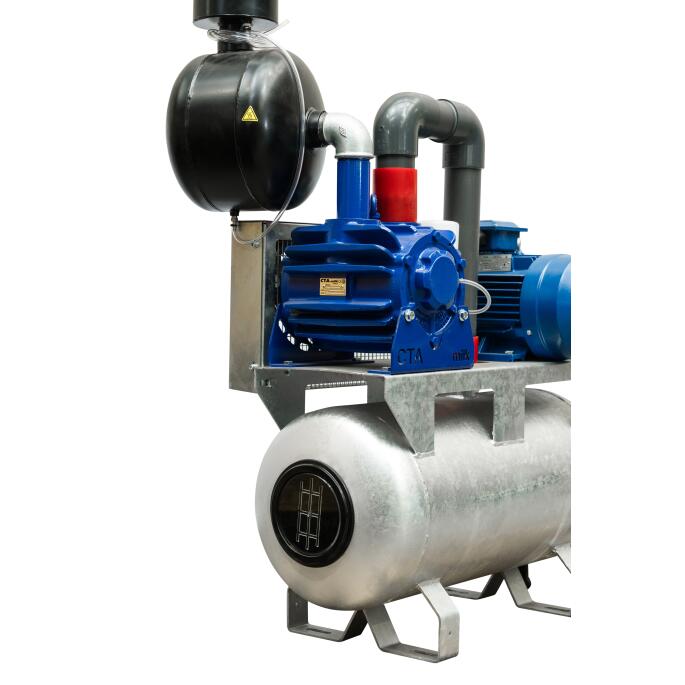 Установка вакуумная СТА 1600 — производительность 1600 л/м (96 м³/ч). Оснащена асинхронным электродвигателем мощностью 4 кВт (380В), вакуумным насосом P.V. 1500 (Италия), ресивером на 80 литров. Она сочетает компактность и высокую эффективность.