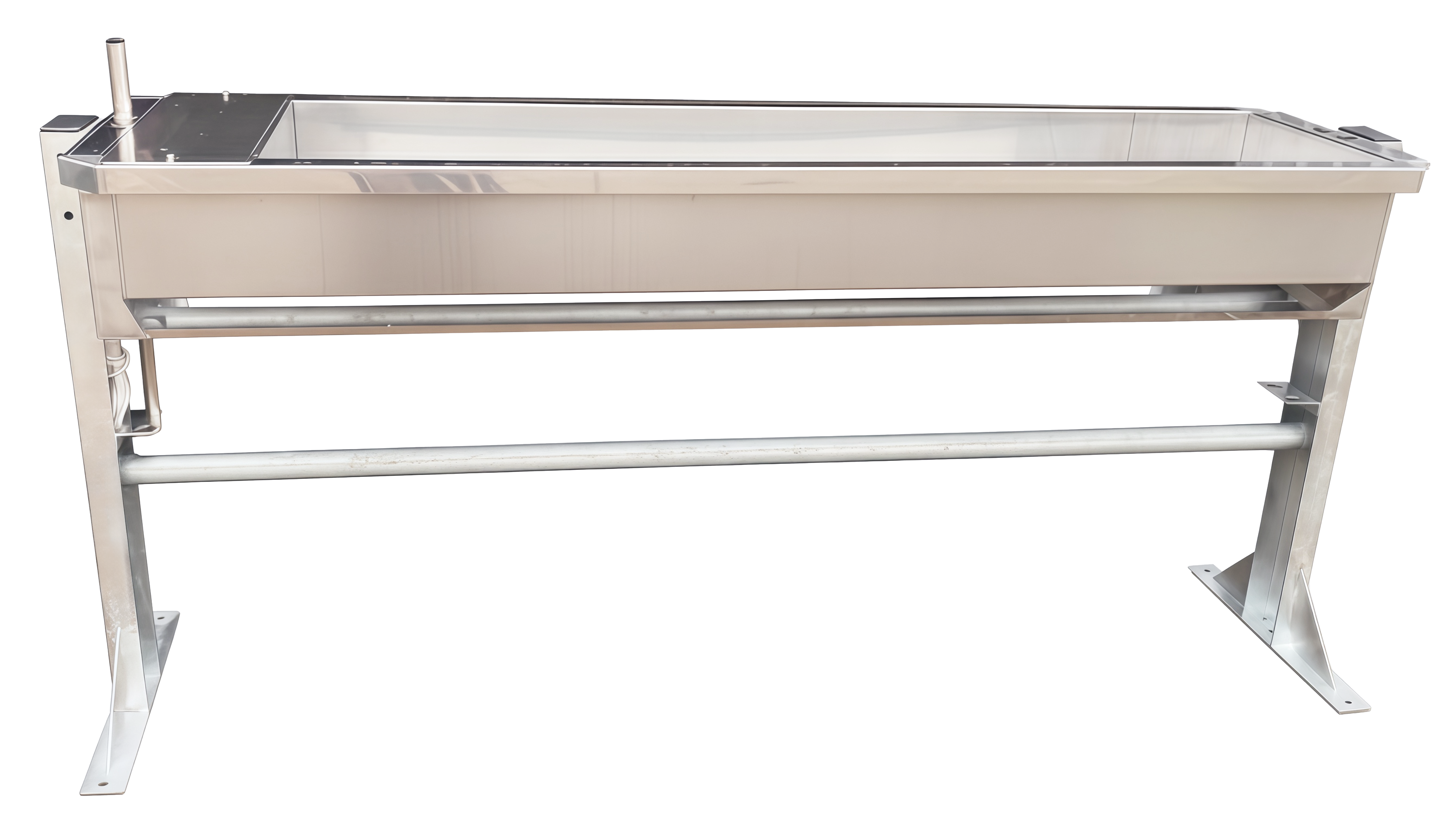 Автопоилка АП-ОН-поилка стационарная, опрокидывающаяся. Тип крепления - напольный. Материал ванны поилки - нержавеющая сталь. Материал стоек и ограждения - оцинкованная сталь. Комплектация поилки может включать: - циркуляционную трубу; - поплавковый клапан КПИ35/40; - устройство подогрева дна ванны (ТЭН 110 /260Вт); - трансформатор 300 Вт (220/24 В (IP54)); - кабель подогрева шланга подачи воды (36Вт); - шланг для воды; - теплоизоляцию кабеля подогрева; - комплект крепления (анкеры). Габаритные размеры стандартной поилки, мм (ДхВхШ): 2000*900х600; * *Размеры и комплектация, конструкция по желанию Заказчика.