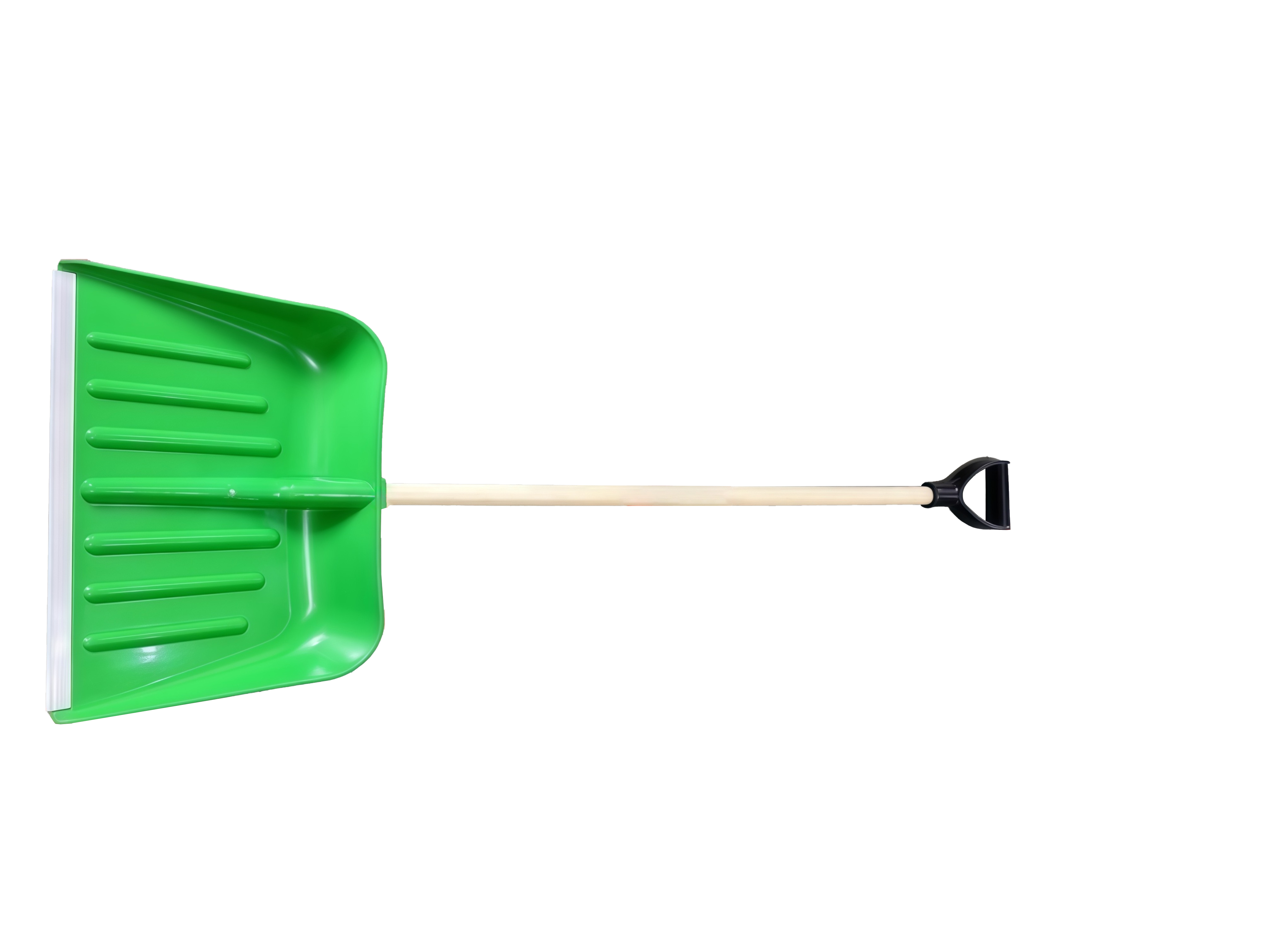 Лопата пластиковая для снега (зерна) зелёная с деревянным черенком 135см (45х36см)