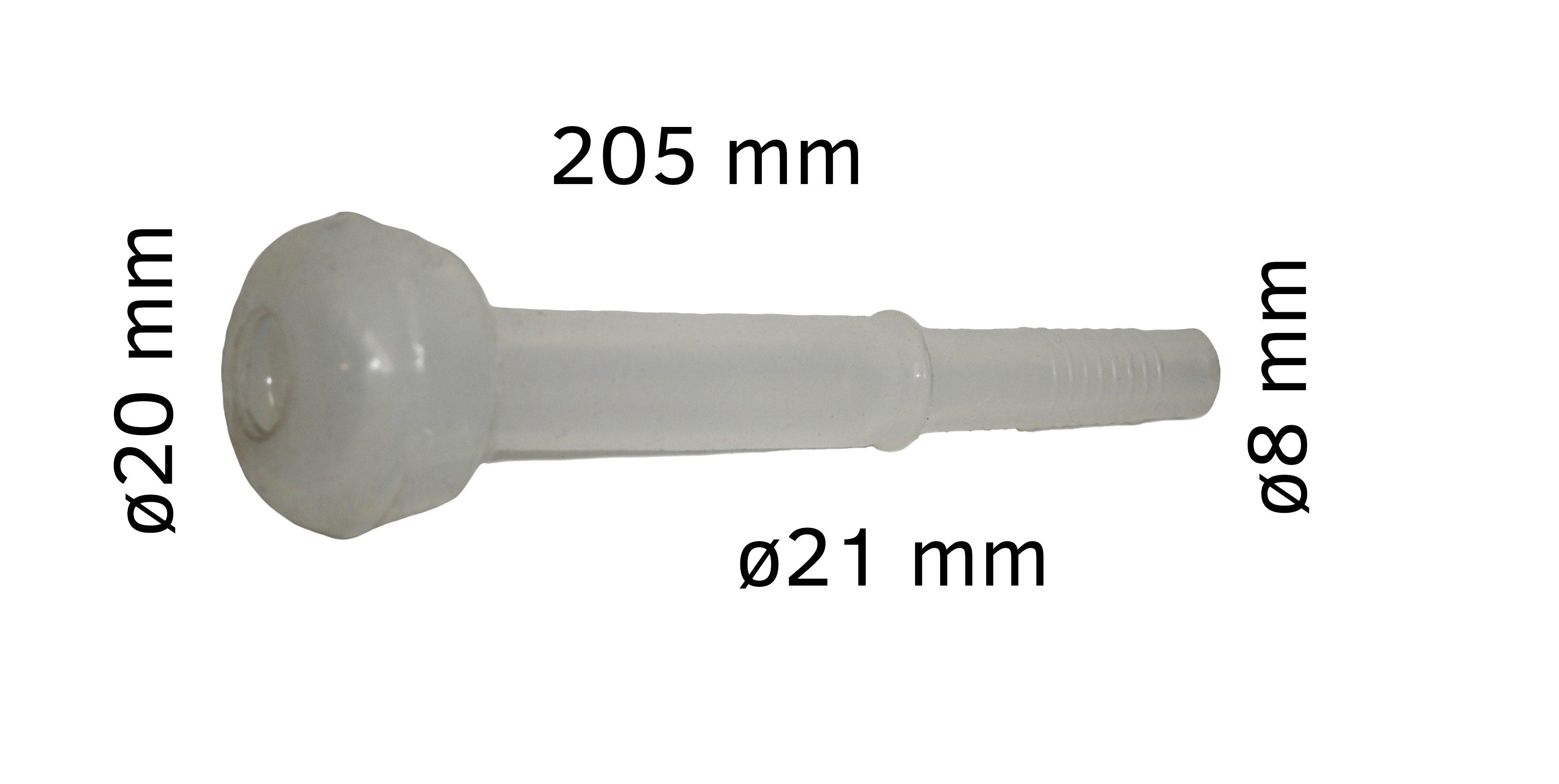 (А) Длина сосковой резины = 310 мм (В) Диаметр входного отверстия в оголовке = 23 мм (С) Внутренний