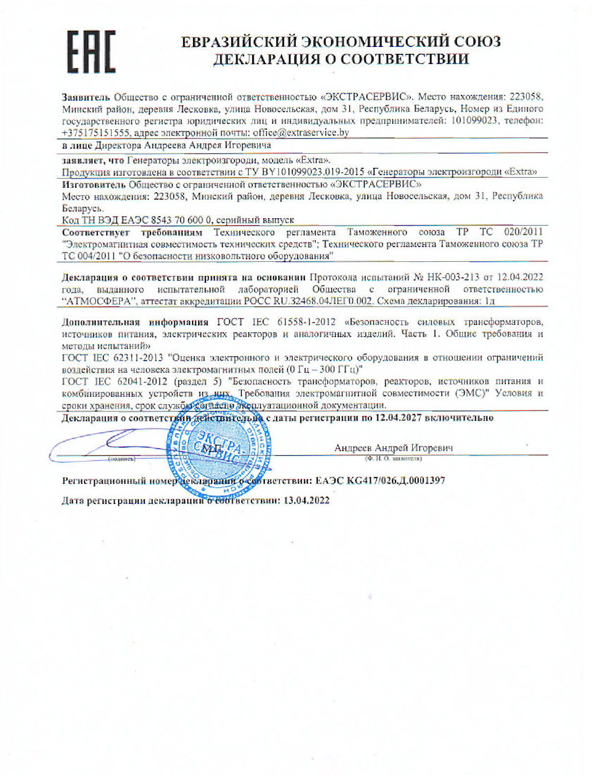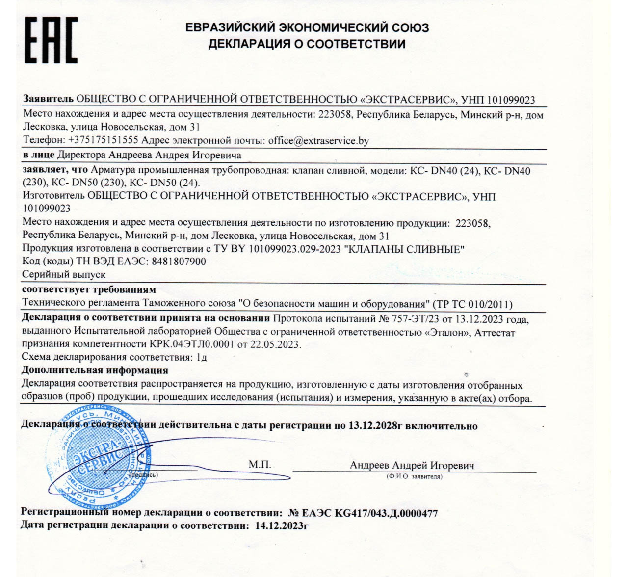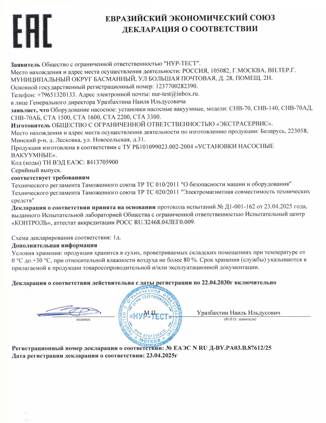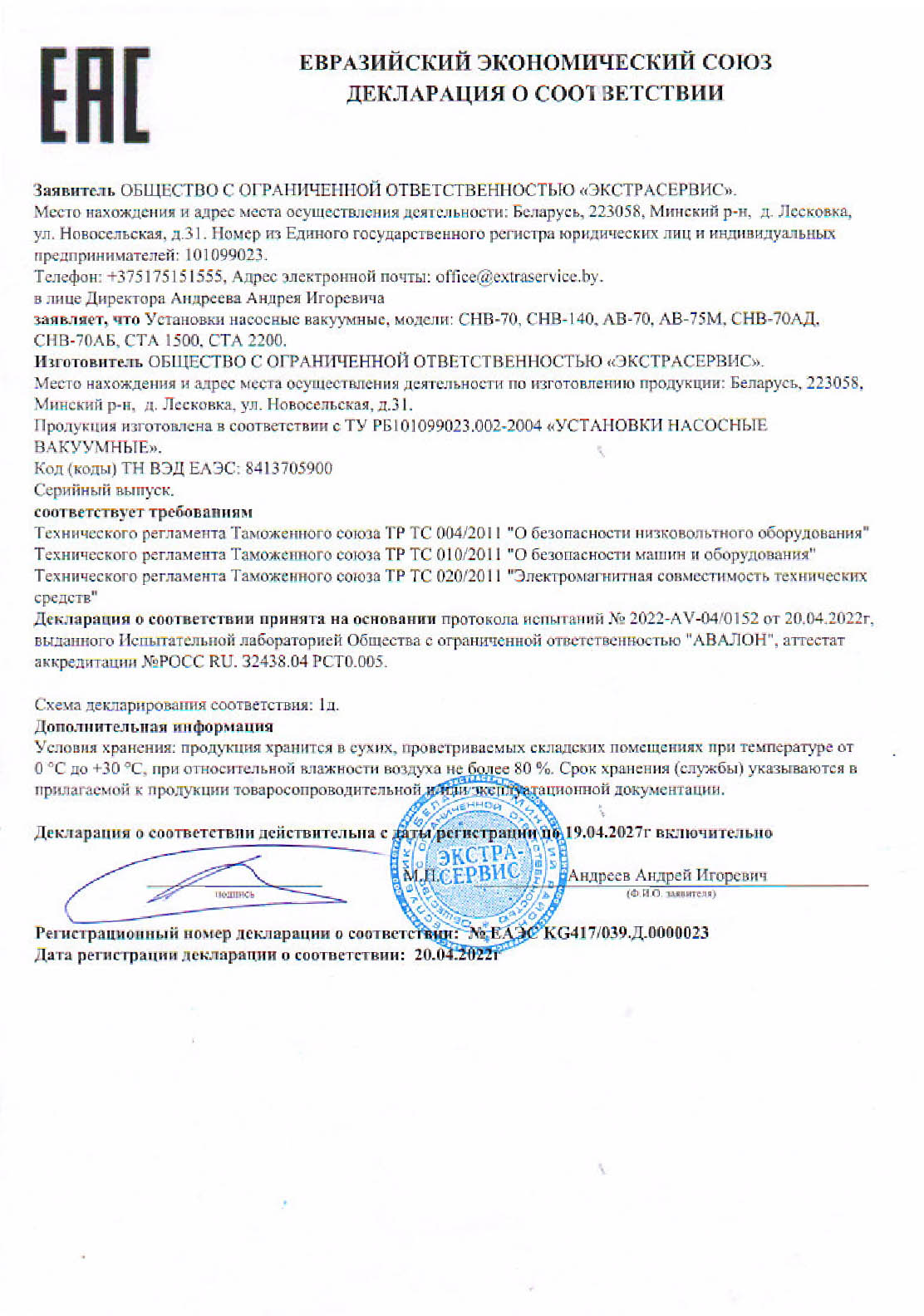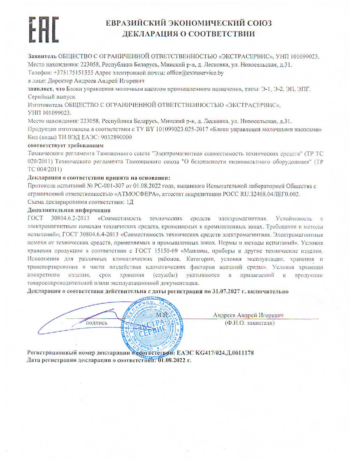 Декларации/Сертификаты Евразийского экономического союза (ЕАЭС)