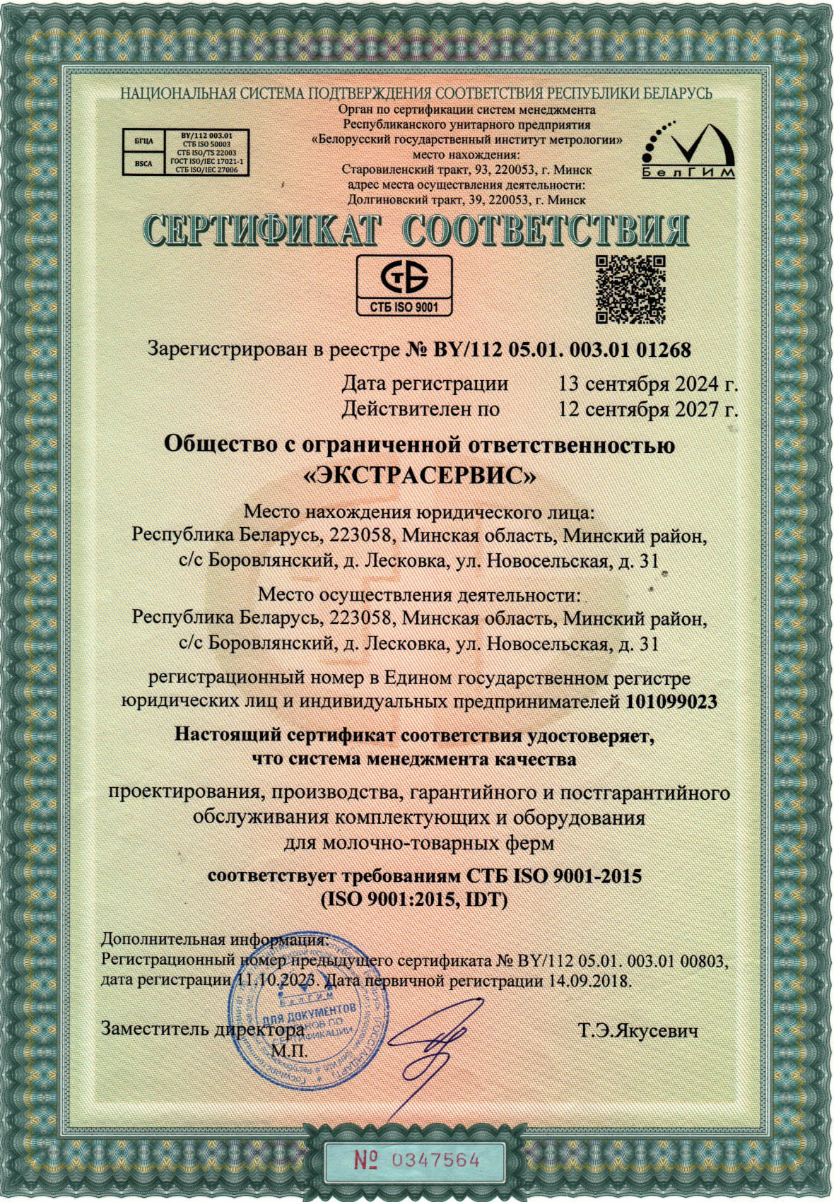 Сертификат СТБ IS0 9001-2015