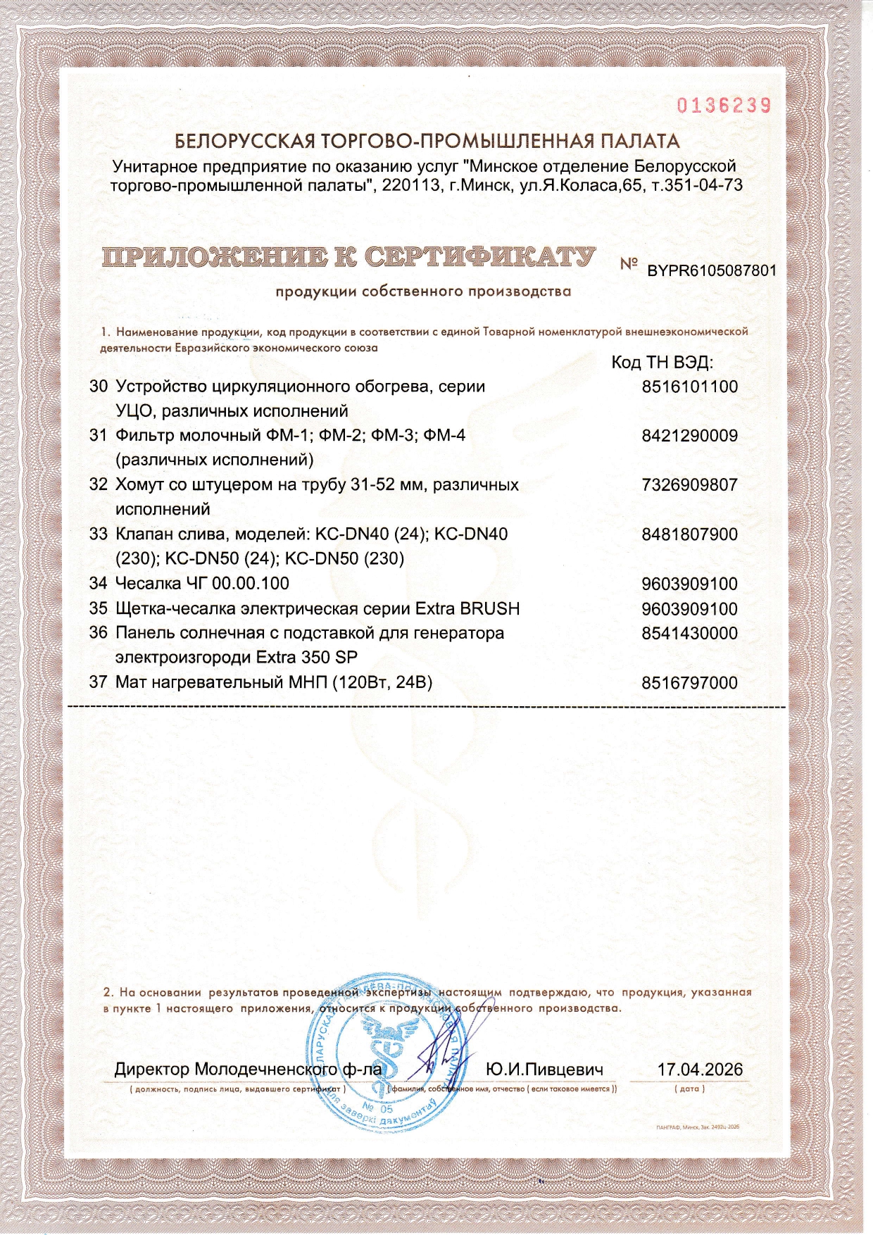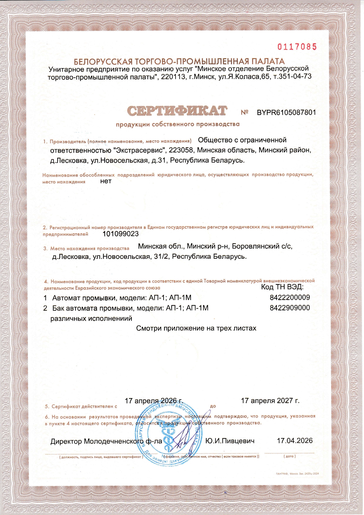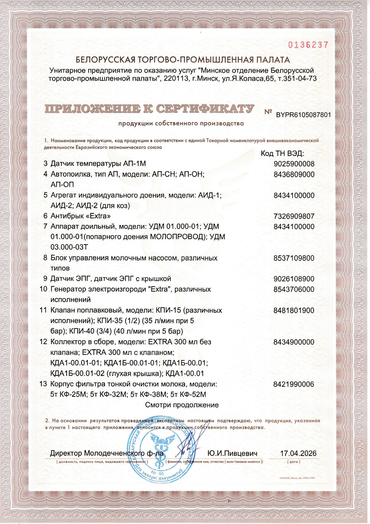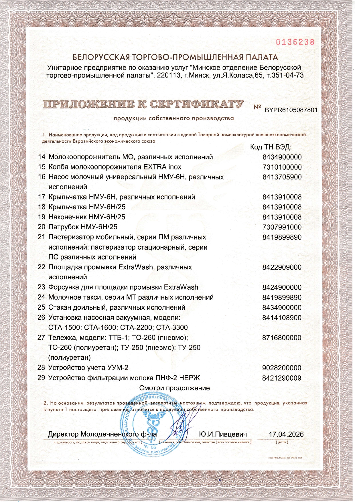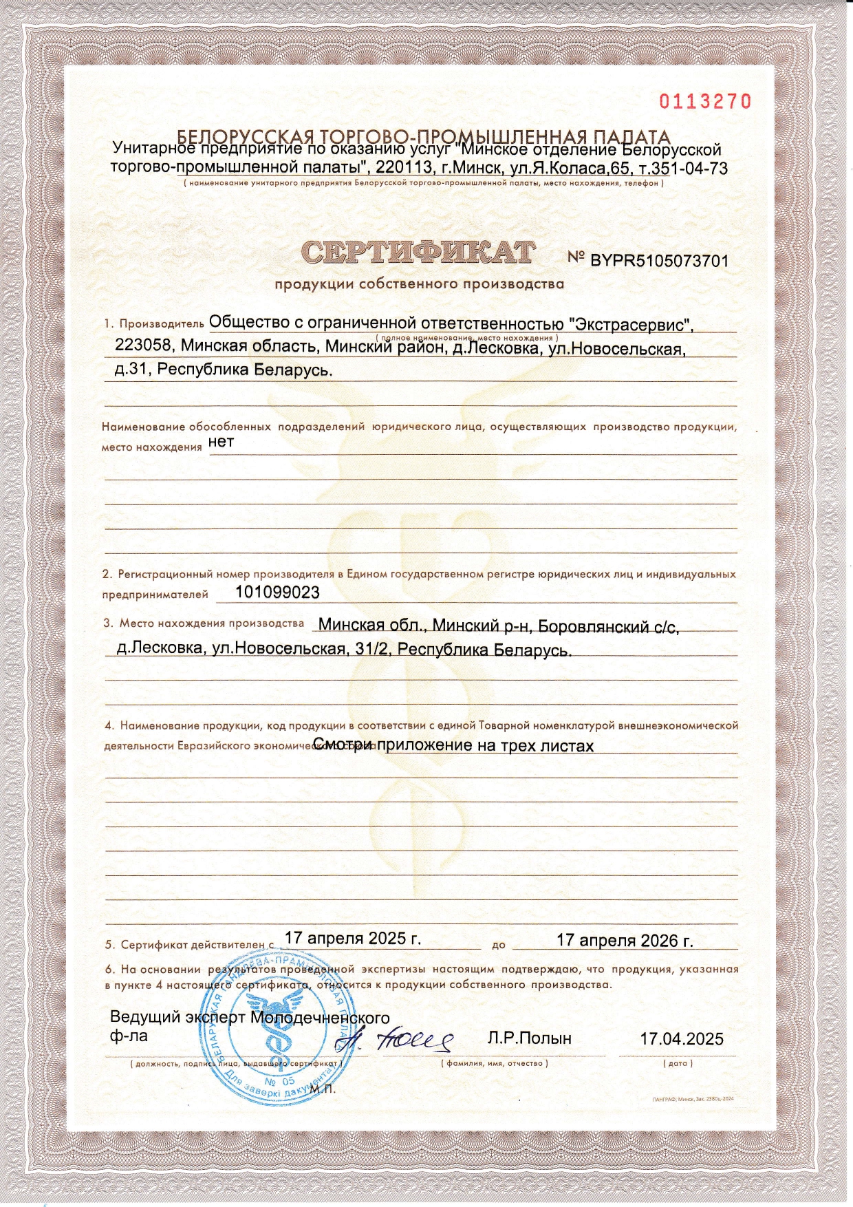 Сертификат собственного производства